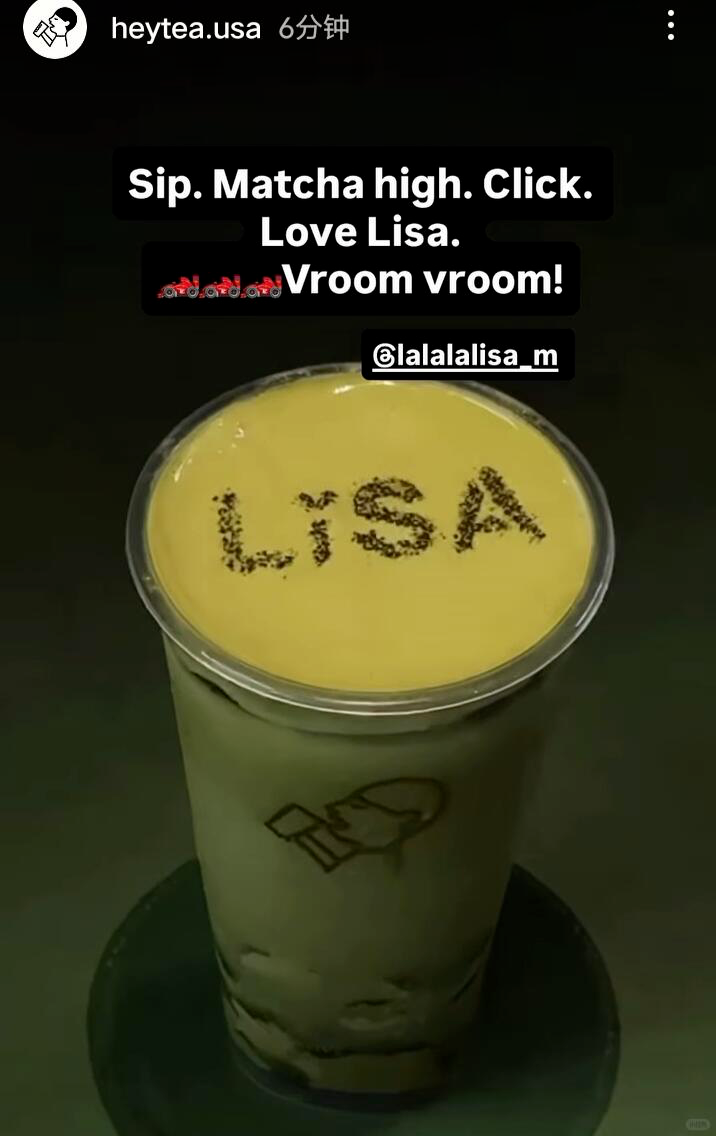 再看Lisa,作为LV全球代言人,此前在社媒上发布的生活照中,法拉利座驾与喜茶的组合,形成了“高端生活方式标配”的场景联想。更巧的是,喜茶背后还有路易威登集团的投资背景,更让这种关联多了几分合理性,进一步强化了品牌在海内外的高端认知。