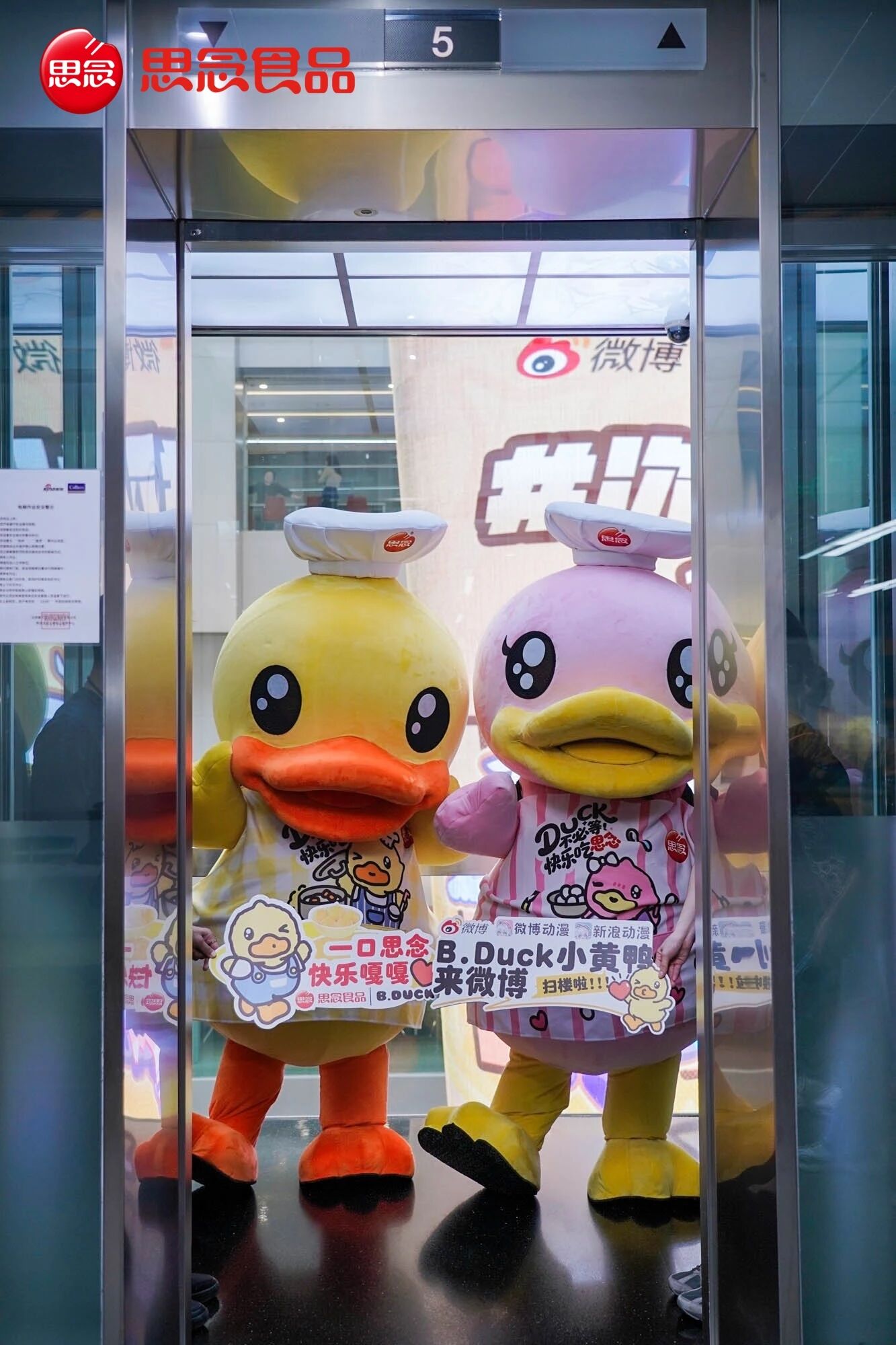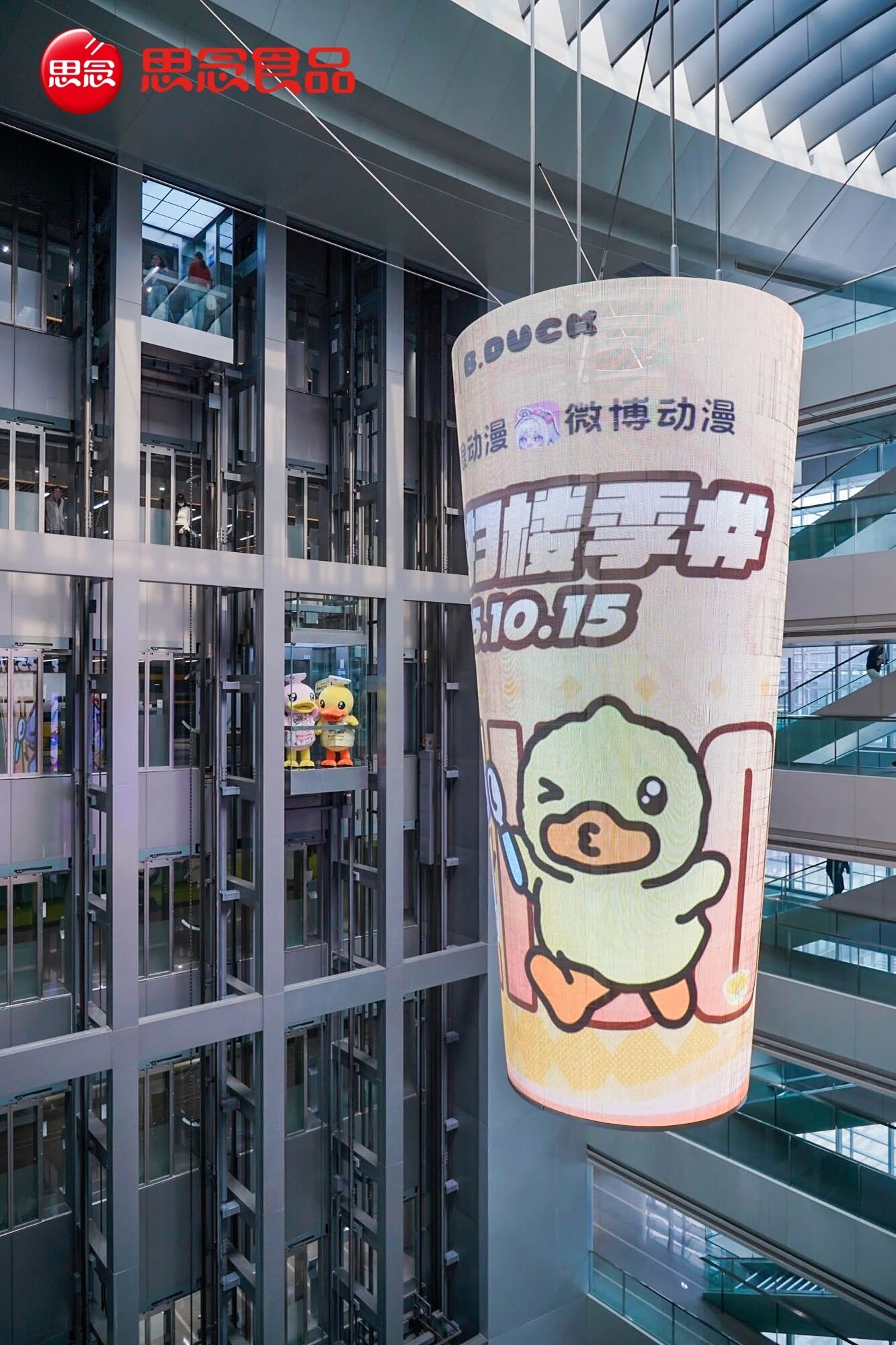 同时,为了缩短转化的链条和获得更多的长尾流量,思念食品还特别推出了微博快闪并打造#大厂员工人手一只小黄鸭#话题,独具特色的京东线下快闪互动模式,结合Bduck IP带给人的快乐情绪进行线下互动策划,反哺线上进行二次热点传播。新浪总部大厦的电梯和悬挂的巨幅画布上,强烈的思念食品×小黄鸭占领视觉标识无不引人瞩目。