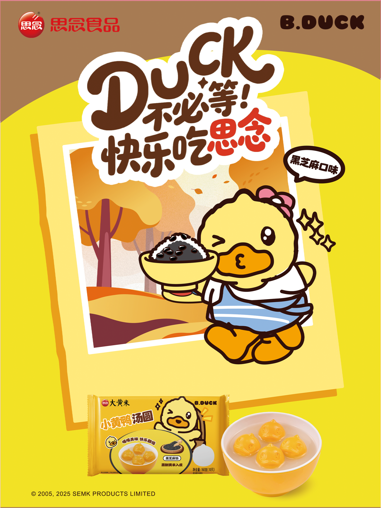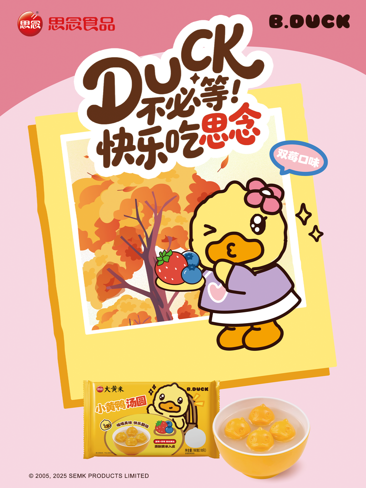 另一方面,在口味的创新上,思念×Bduck小黄鸭汤圆以“甜品化”、“健康化”为核心,贴合年轻家庭的日常食用需求。