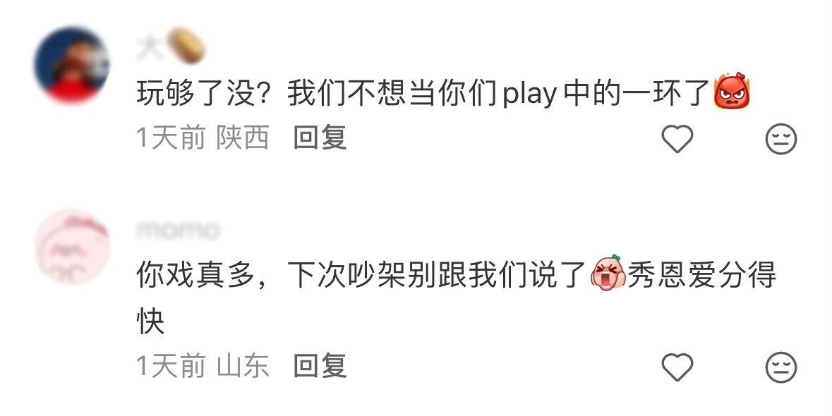 随着大家对事件的关注,多儿继续放出对方不爱的物料,从「你的眼里还有我吗?」「有物质的爱情也像一盘散沙」,到「再也不和你说话了」,好像事态在不断升级,好像矛盾真的不可调和。