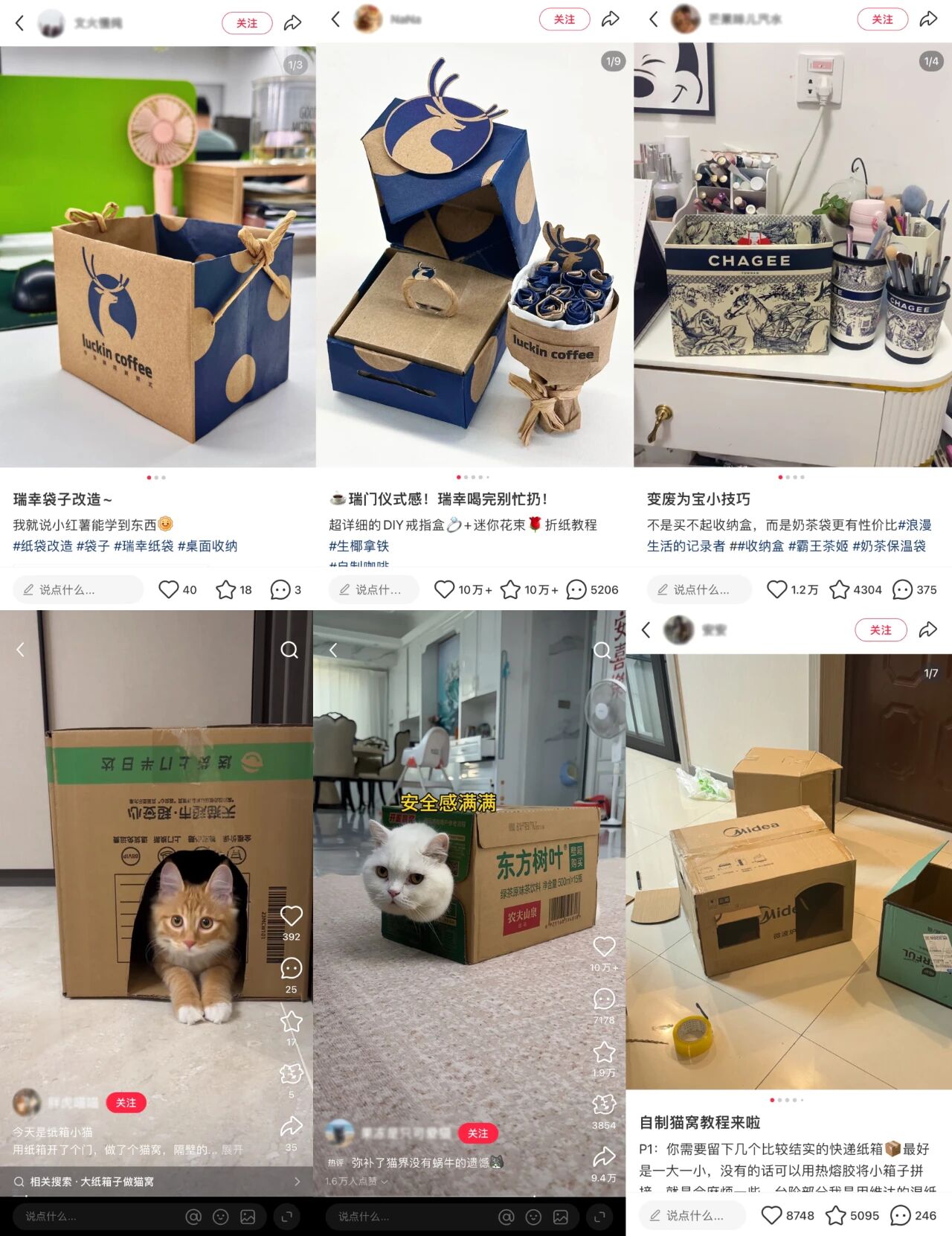 年轻人渴望表达,主动掌控个人生活方式。他们通过“怎么用”而非“买什么”来建立品位与个性,物尽其用,主动解绑使用场景,重写产品逻辑。比如把饿了么、美团外卖、霸王茶姬的外卖袋改成便携收纳包,既环保又实用;在与辉同行下单买的帆布袋,成了大家通勤穿搭的核心单品,时尚又个性;电商平台下单的纸箱,变成了免费猫窝,为宠物提供了一个温馨的小窝;在瑞幸买咖啡,其包装纸袋摇身一变,成了消费者办公桌上的纸巾盒、书签等。产品功能多维化和场景玩法自定义,成了当代生活的新日常。