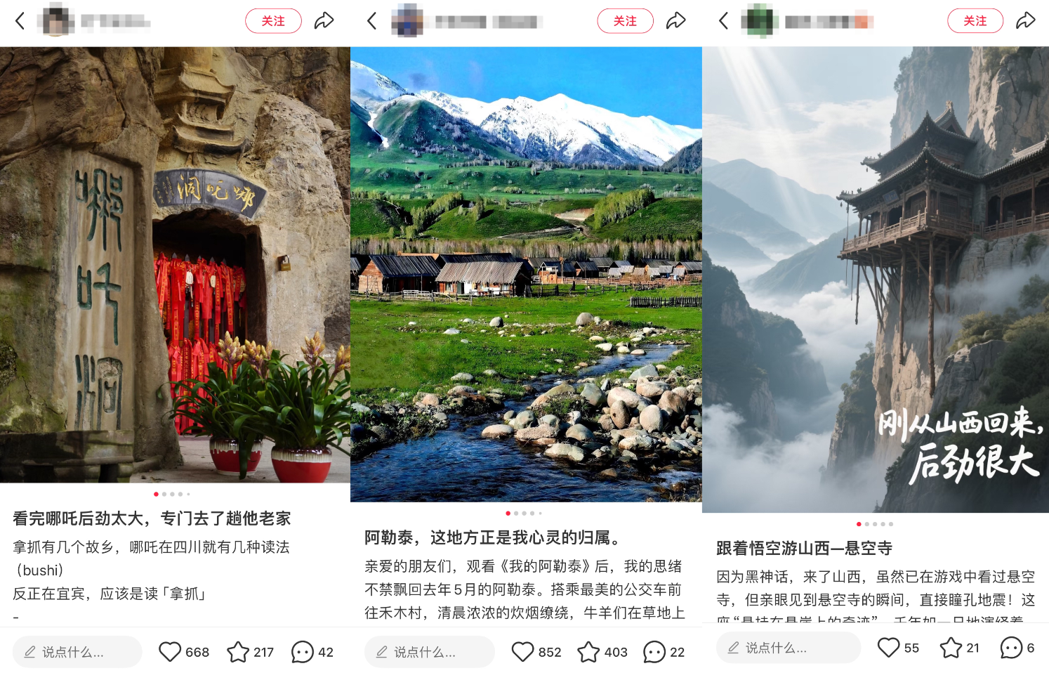 除此之外,2025“因为一个 IP 打卡一座城”还成了年轻人的新潮流。《哪吒2》点燃了大家的激情,哪吒小镇、宜宾哪吒文化以及哪吒主题旅游线路,都受到了人们的追捧;《黑神话:悟空》让山西搜索量在旅游平台飙升,小众文博景点登上热门榜单,吸引了众多游客前来探寻文化的奥秘;《我的阿勒泰》让新疆的热度从“一时火”走向“四季热”,那片干净的土地成为了人们心中的诗与远方。