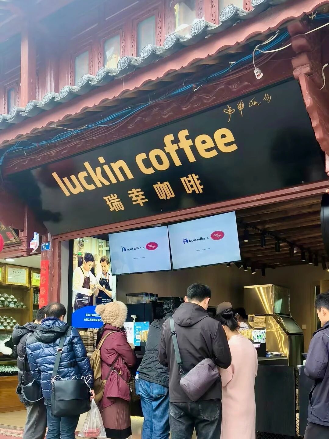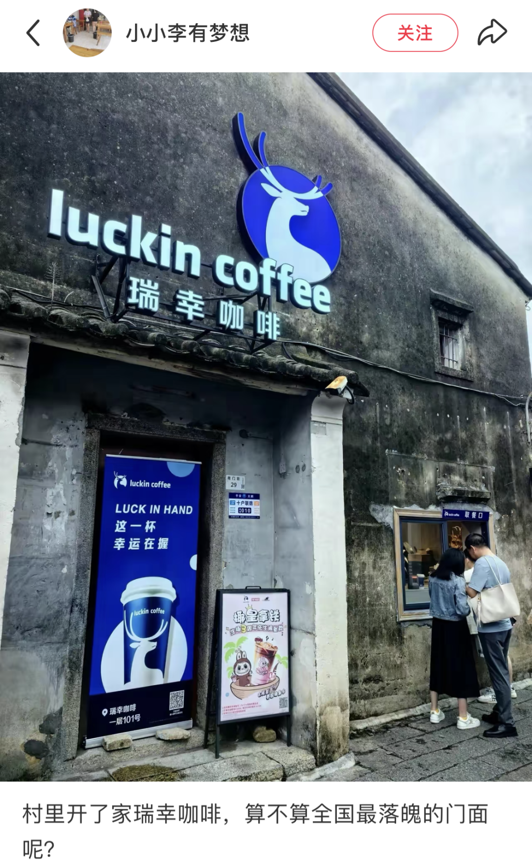 瑞幸的烟火气渗透还延伸到了村镇市场。瑞幸选择把门店开在当地的老房子里,保留了青瓦、木窗等地域建筑元素,再融入品牌的极简风格,让门店既不突兀又有辨识度。与城市门店不同,这些村镇门店会根据当地消费习惯调整产品,更适配乡镇年轻人的口味。在山西一县城的瑞幸门店,春节期间甚至出现了“排队2小时、日销1000杯”的盛况,原本被认为接受度低的乡镇市场,成了瑞幸新的增长地。这种选址策略,真正实现了品牌的下沉渗透。