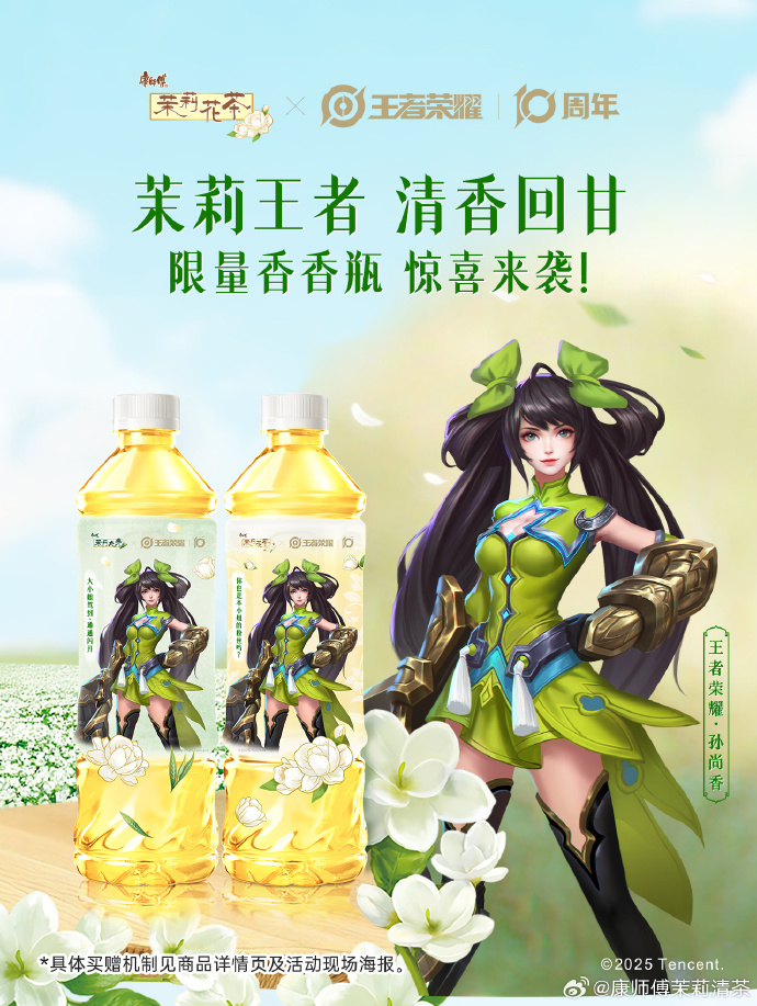 就拿在《王者荣耀》十周年之际与其联名的康师傅茉莉花茶来说,品牌从一开始就没有将联名目标聚焦在短期曝光之上,而是把“如何留下流量、用好流量”作为传播主线,将看似分散的活动串联在一起,借着“一物一码”这个载体,设计了一套环环相扣的沟通路径。