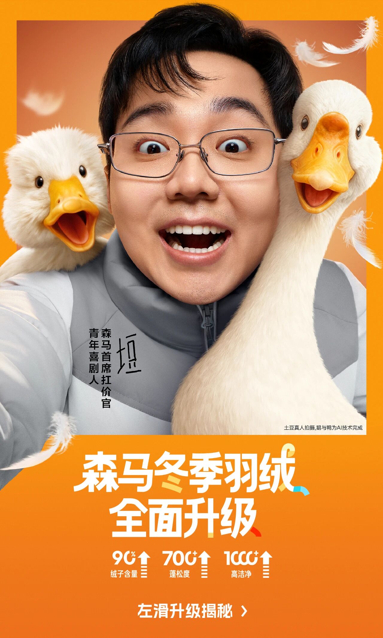就在这样的市场背景下,森马另辟蹊径,邀请青年喜剧人“土豆”担任“森马首席扛价官”,推出了一支既荒诞又好笑的羽绒服广告片。这支广告片不仅巧妙回应了“涨价”争议,更凭借独特创意和趣味表达,成功吸引了消费者的目光,让“森马羽绒服全面升级”的消息深入人心,为品牌在冬季市场竞争中赢得了先机。