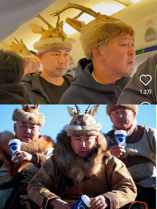 事情是这样的,三位鄂伦春族大哥在坐飞机时,因头戴萌萌的「狍角帽」而在网络上迅速走红。因为帽子与瑞幸的logo鹿角十分相似,于是不少网友纷纷玩起了梗,「这不是瑞幸族族长团建吗?」、「瑞幸logo成精了」、「三位大哥是瑞幸员工」…..动静很快就闹到了瑞幸那边。