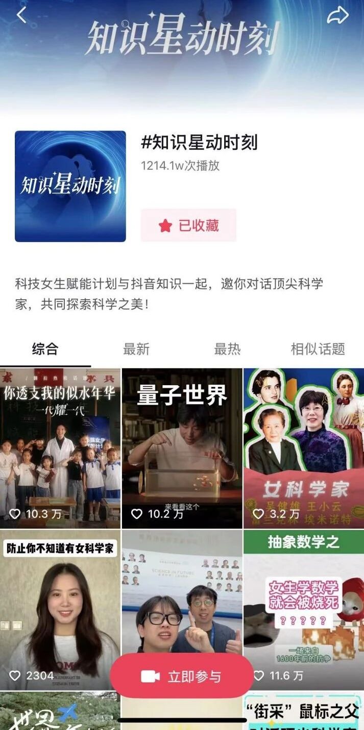 十月底,一场上海大型学术追星现场霸占了抖音同城榜热搜整整一周。在社交话题的讨论声中,更是不乏有众多的女孩表达了自己的科研梦。