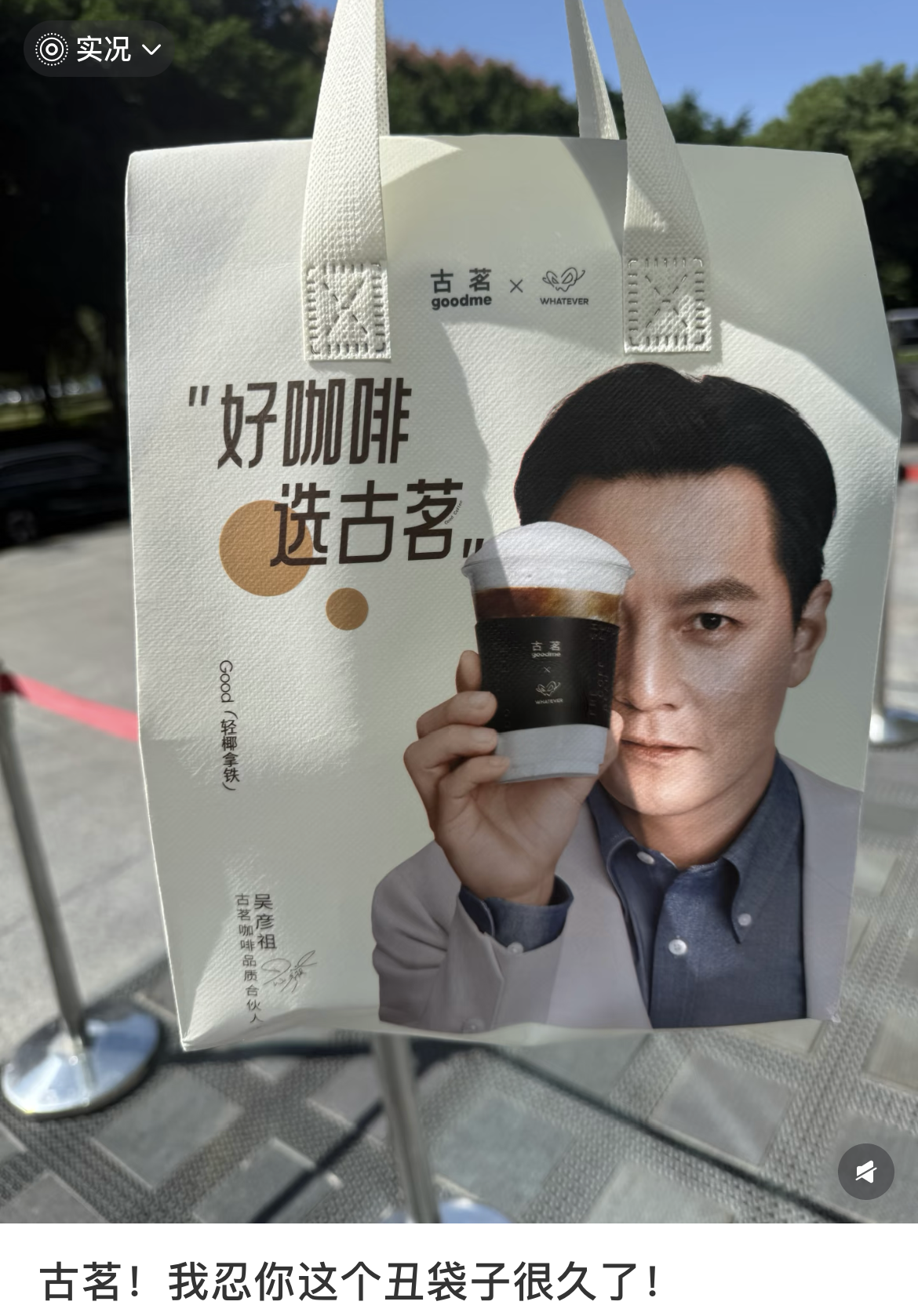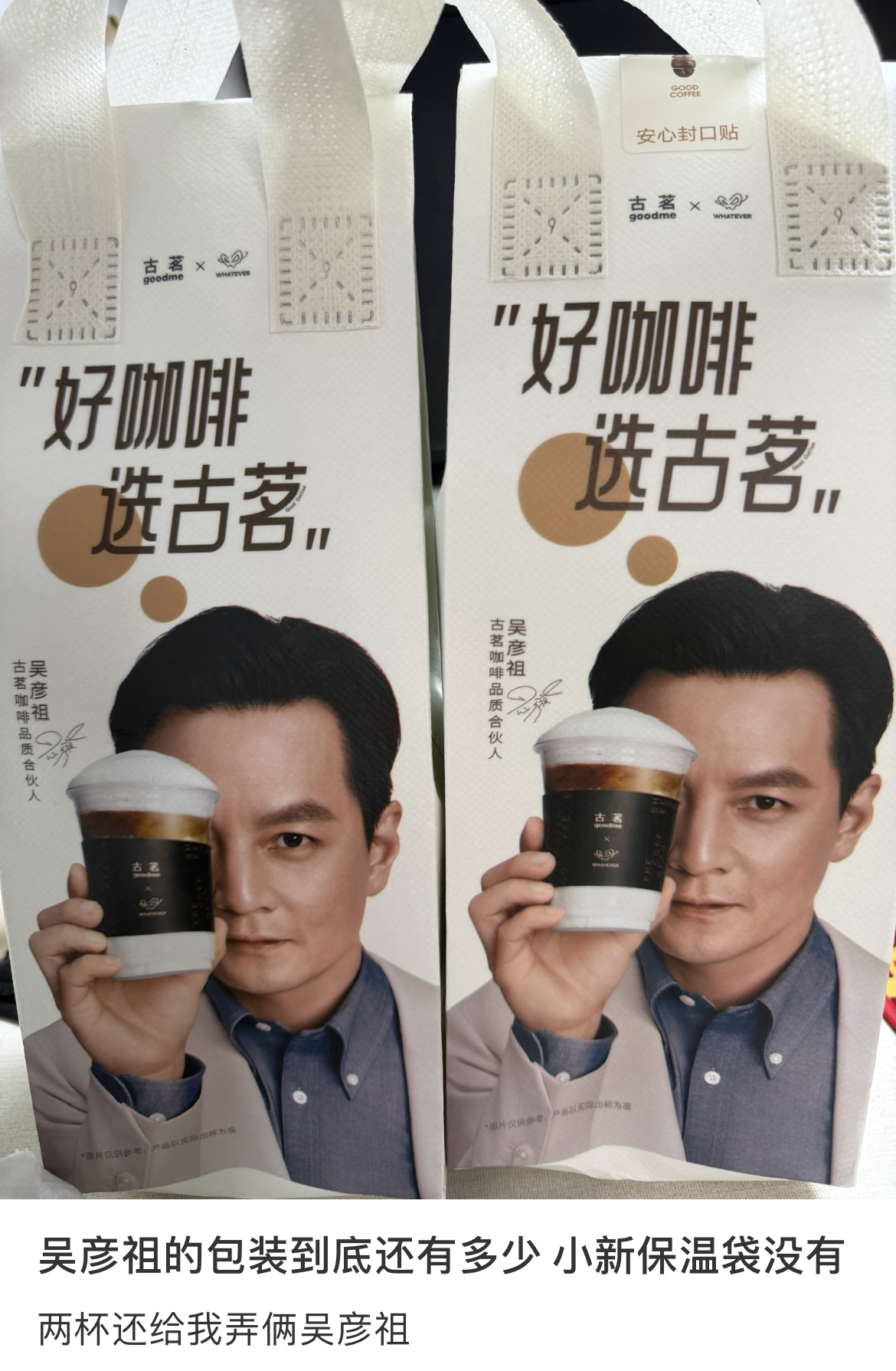 然而,当印着吴彦祖形象的包装袋铺满全国古茗门店时,期待瞬间转化为失望。在小红书、微博等平台,该包装迅速成为“吐槽重灾区”!吴彦祖的面部形象占据包装袋近三分之二空间,过度磨皮与修图让标志性轮廓模糊,被网友调侃“认不出是阿祖,倒像尹正、韩庚等多位明星的混合体”;