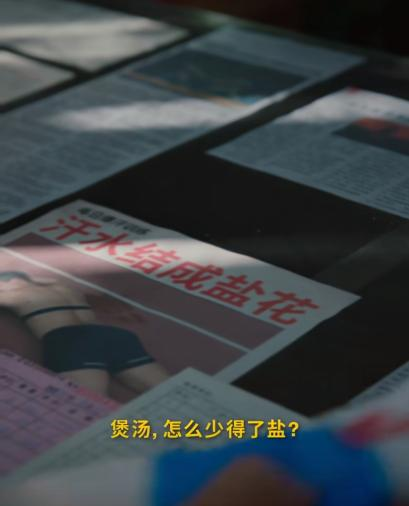 比如谈煲汤少不了“盐”时,画面给到了新闻报道中苏炳添“每年训练浸透300件T恤”;而汤中最常见的食材“苦瓜”,也对应着苏炳添经历韧带拉伤、跌入低谷的那段时期;“21年神级陈皮”,对应着苏炳添21年运动生涯的沉淀和积累,也是对他那些年封神表现最贴切的比喻……短片中类似本地人都懂的隐喻,还有很多。