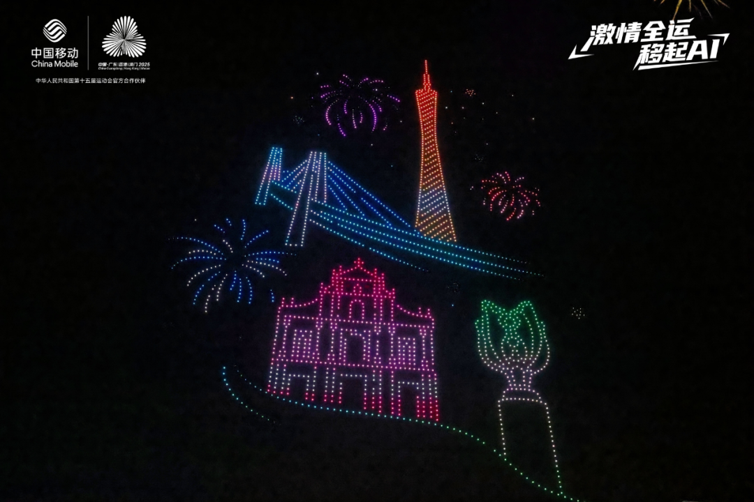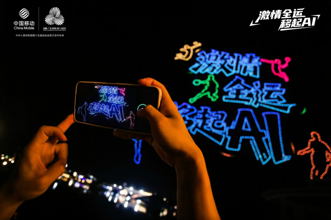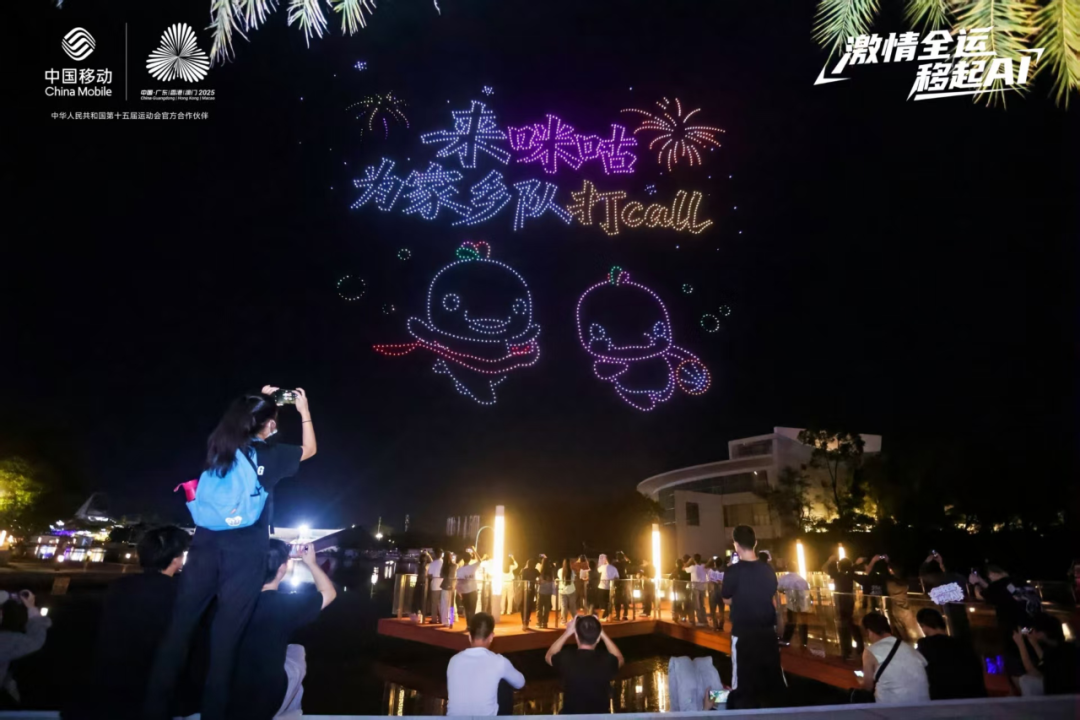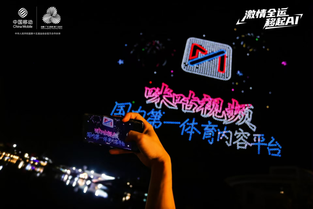 就像在全运会开幕式期间,咪咕在深圳举行一场“点亮湾区”千机天幕秀。当晚2500架无人机升空,以光为笔在夜空中勾勒出全运元素与城市符号,上演了一场震撼的视觉盛宴,直接将赛事氛围感拉满。更关键的是,咪咕不仅以此向全运健儿致意,更通过“来咪咕为家乡队打call”的行为引导,巧妙激发用户的集体认同与在地归属感。