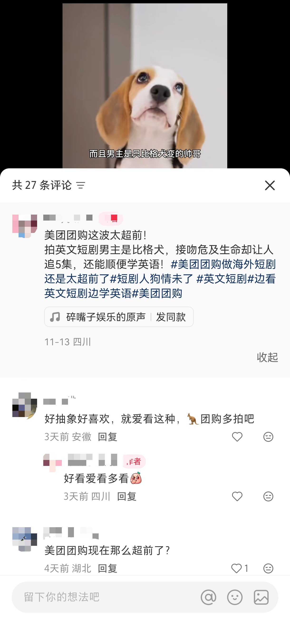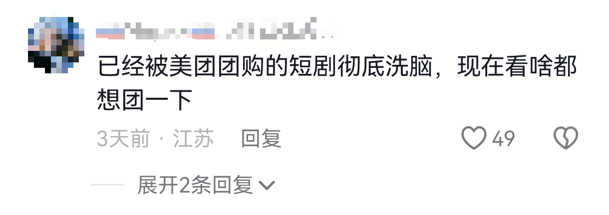 很多网友都表示:已经彻底被美团团购的短剧洗脑,现在看啥都想团一下。
