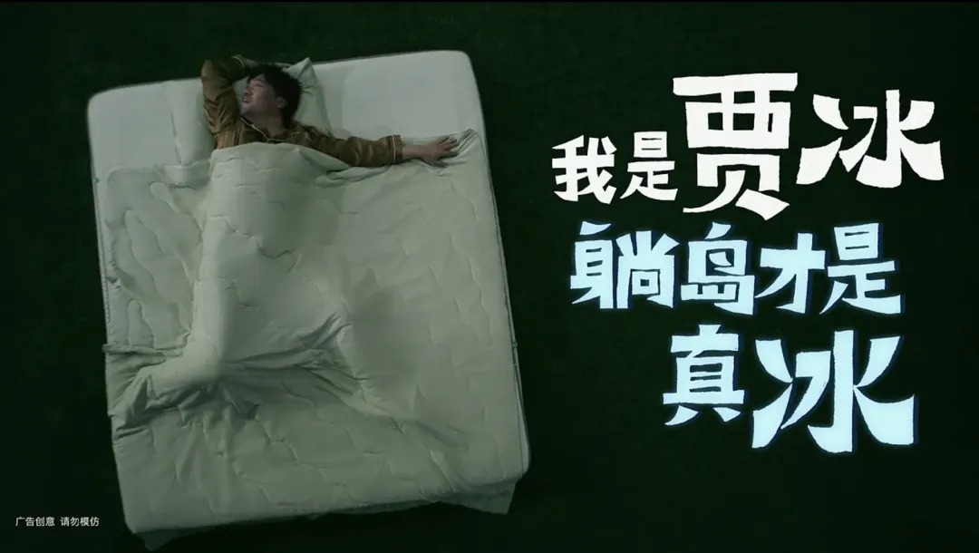躺岛:用喜剧的方式玩谐音梗,让代言人的名字“贾冰”与躺岛产品“真冰感”的核心卖点直接锁死。