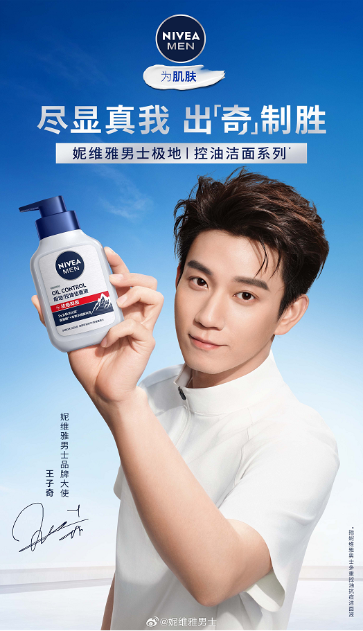 妮维雅男士在官宣品牌大使王子奇时,运用了同样的思路,“尽显真我,出‘奇’制胜”,只不过这里的“奇”不是用同音字代替,而是本身就具有双重含义。