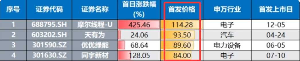 如果说A股市场有“现象级IPO”的评选,摩尔线程绝对能毫无悬念地摘得年度桂冠。12月5日,这家国产GPU龙头企业正式登陆科创板,从开盘的那一刻起,就开启了“一路狂飙”的市值神话。发行价114.28元/股的定价,本就已是近年来A股新股的“天花板”,远超天有为、优优绿能等此前的新股标杆,谁也没想到,这只是这场资本狂欢的起点。