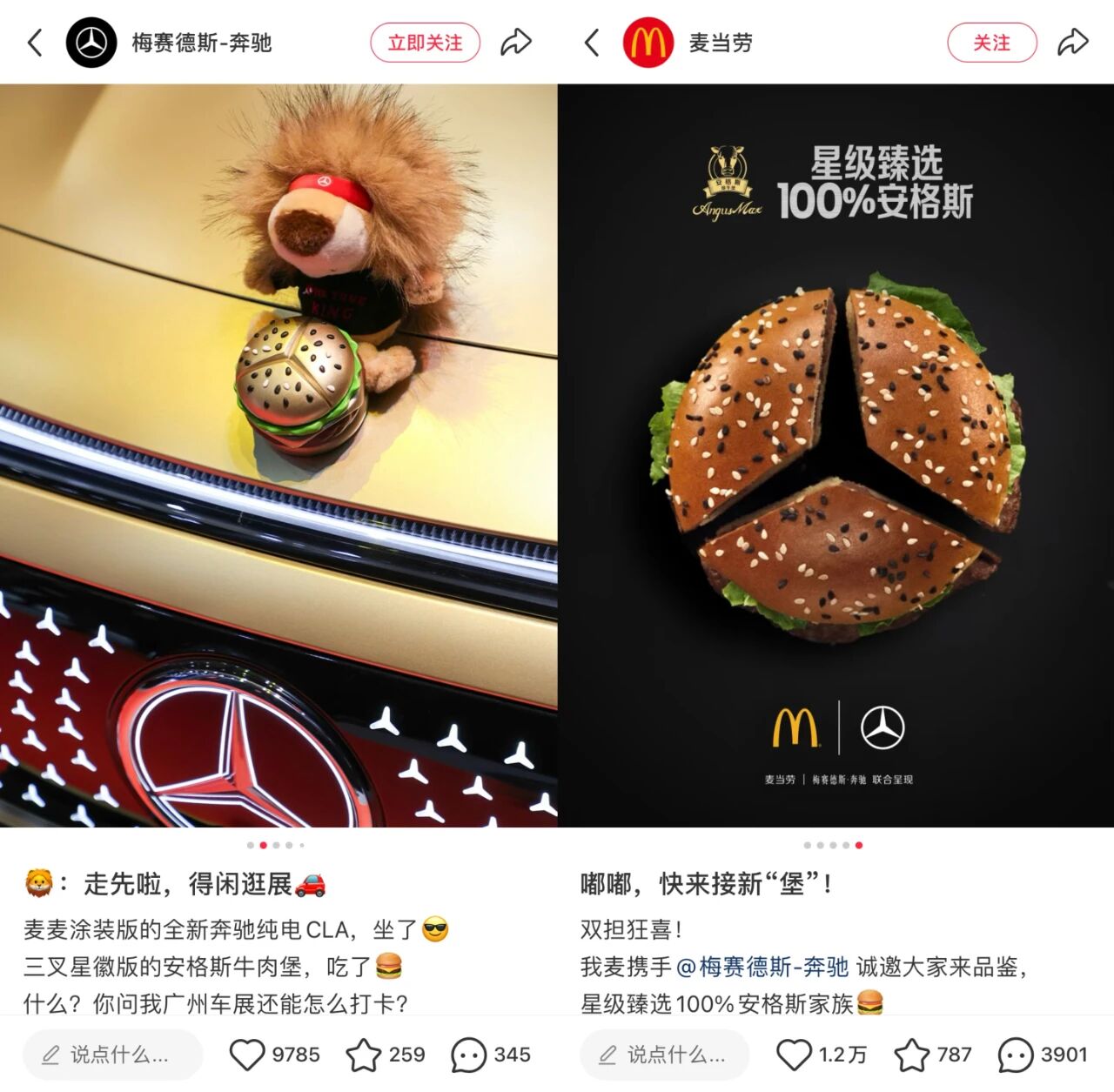 麦当劳和奔驰因共同代言人王楚钦促成联名,这一关联使得两大品牌顺理成章地开启合作。这波梦幻联动新鲜有趣,在好奇心与趣味性的推动下,麦当劳和奔驰的这波罕见联动收获了高频流量与关注,成功破圈。