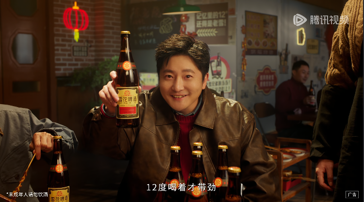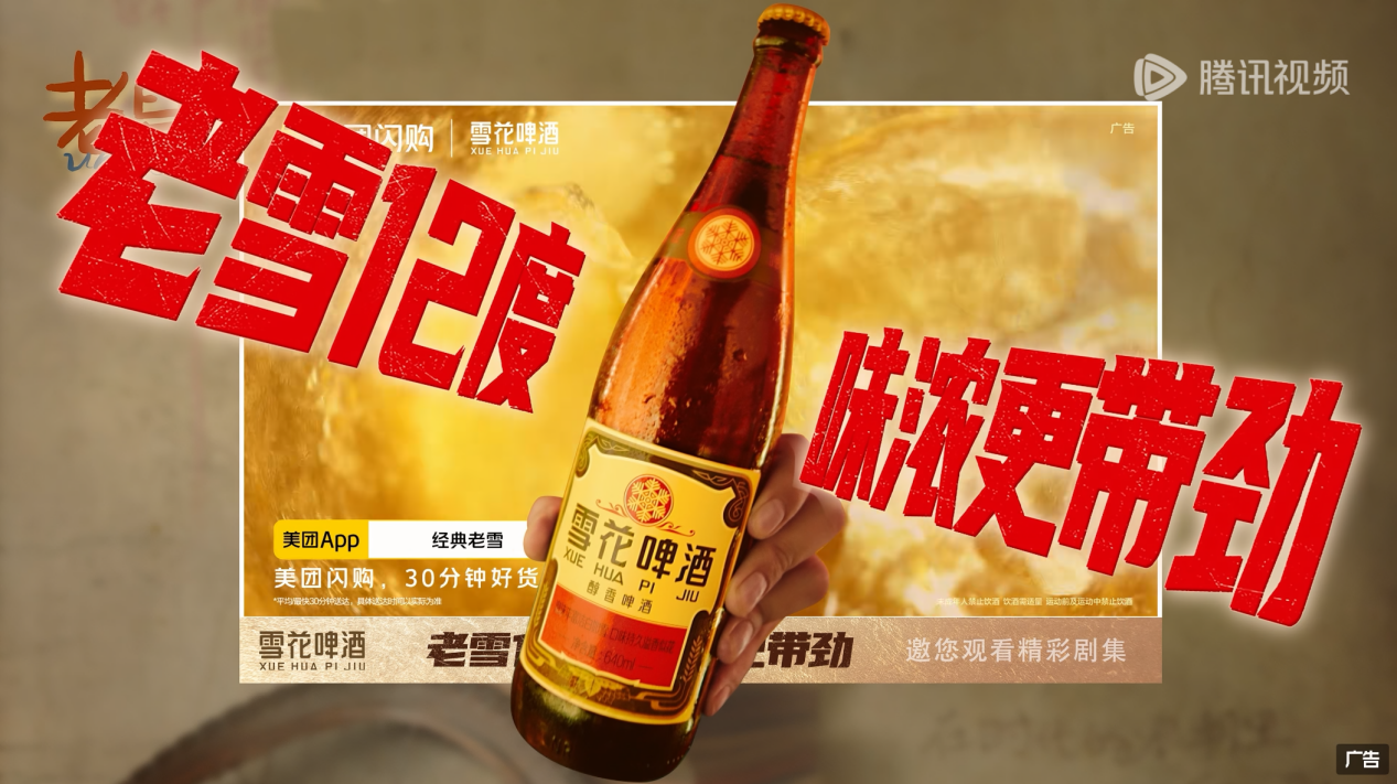 比方说,啤酒算得上历经时代更迭的产物,本就与《老舅》叙事时代背景高度吻合,再加上老雪啤酒本身所带的东北基因,也与剧中主要呈现的场景同频共振。也正因如此,品牌在剧中那些贴片、创意中插的植入,很多时候并不违和,就好像故事中本来就有那么一瓶酒。