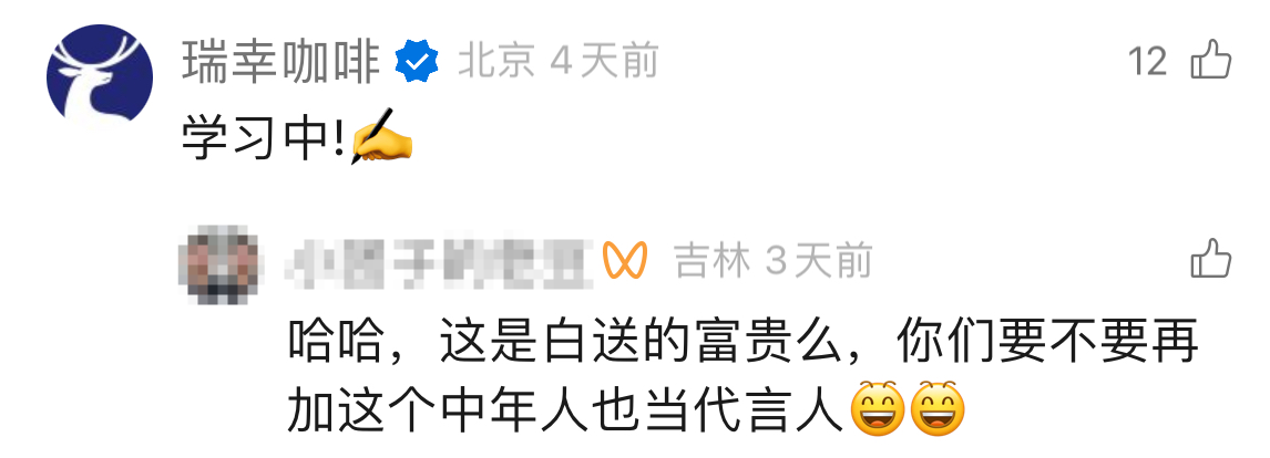 有网友化身吃瓜群众,开始在评论区写段子,“给瑞幸做文案!是报复星巴克么”