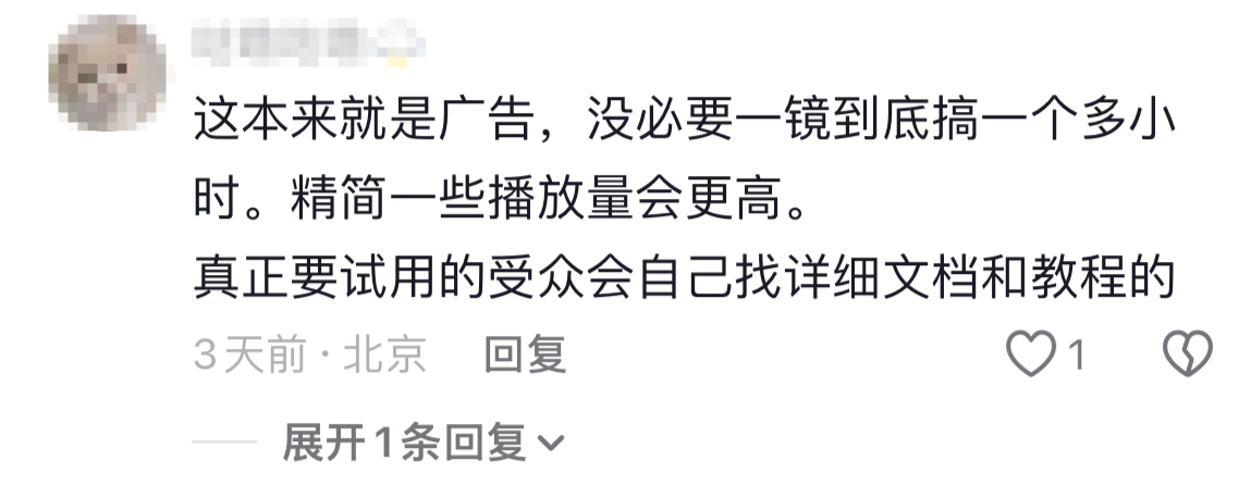 视频上线后,一些网友提出“中肯”的评论,认为有待改进。