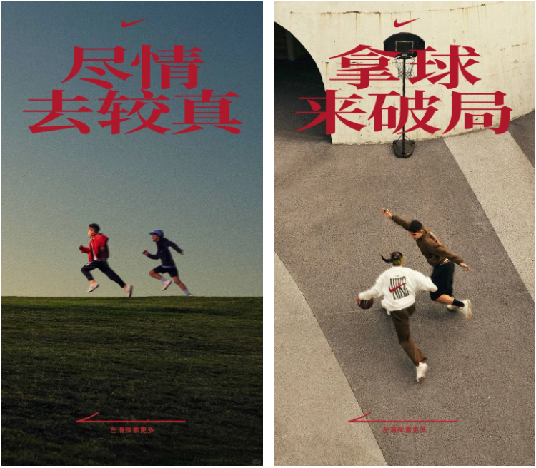 在文案上,Nike的文案并没有强制输出与鞋、服等相关的产品,而是把产品与品牌的精神价值进行了深度绑定,让“破局”的寓意与传播主题更加可感可知。
