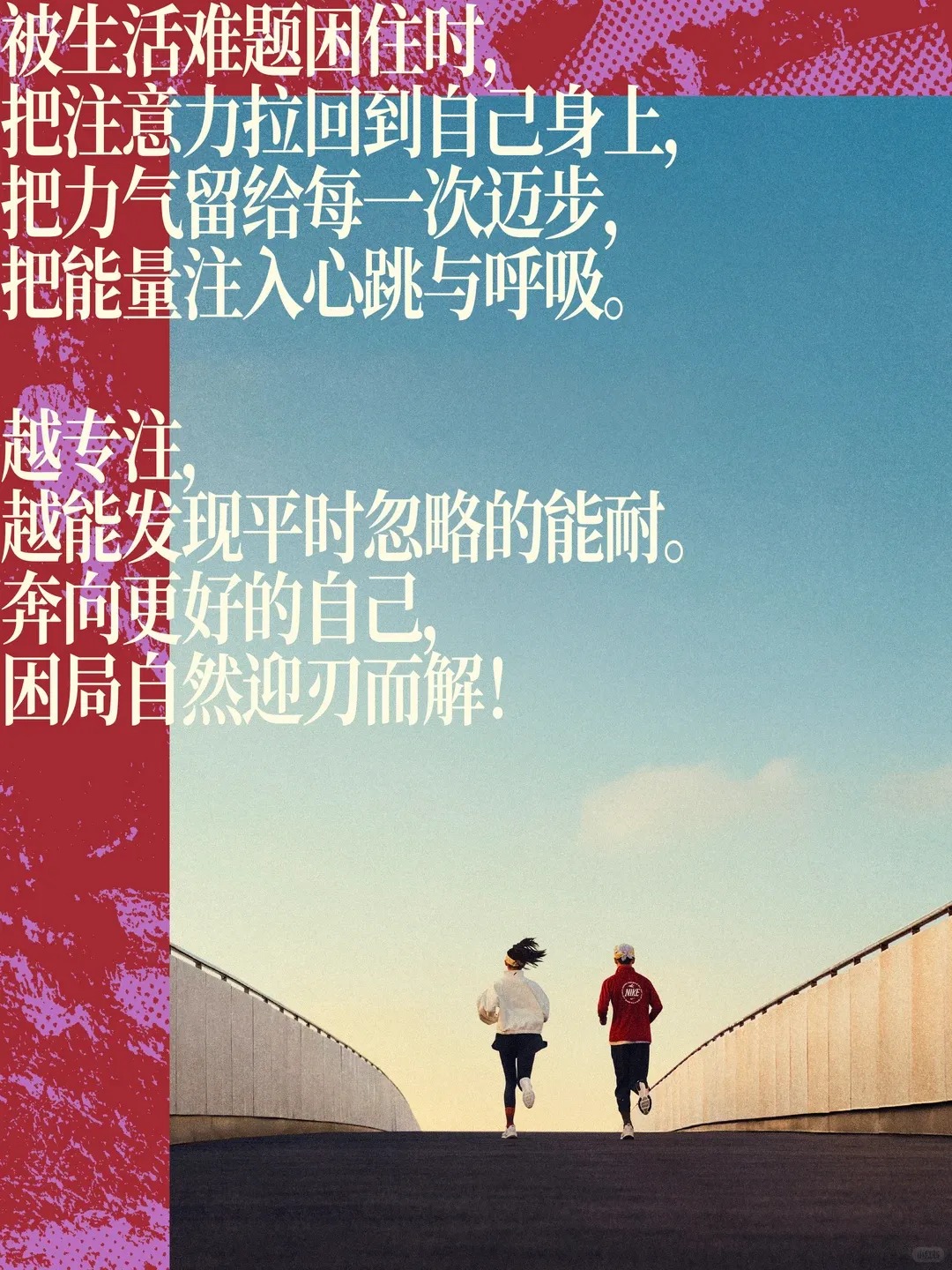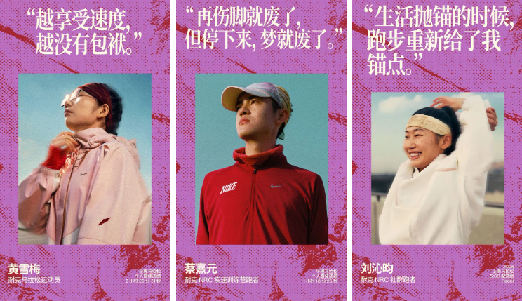 比如,在“开跑来破局”文案中,“越享受速度,越没有包袱”“再伤脚就废了,但停下来,梦就废了”,既有胜负欲,又将跑者心中的真实想法表现了出来。