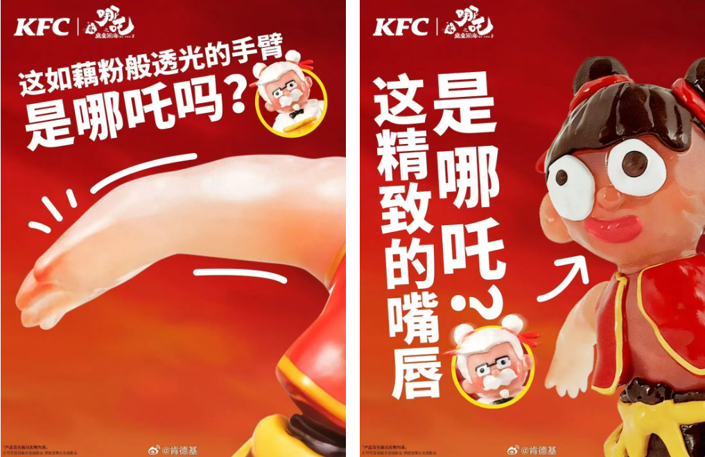 很明显,肯德基与哪吒的联名,凭借用极具冲击力的审美和意想不到的造型,成功激发了网友的讨论、玩梗与购买欲。让看似“平常”的联名,隐藏了吸引人的“勾子”(即核心亮点或爆点)!