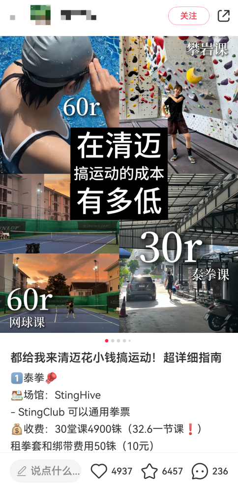 去清迈上体校、去巴厘岛打网球、去香格里拉徒步、去可可托海开板滑雪…….运动和旅游两不耽误,成了这届健身人的自在出行攻略。不过,“运动度假”和那些追求身心放松“运动修行”不同,运动度假的强度往往比日常训练还要高几个等级。在陌生的地理和气候下,即便是再熟悉的技能,也不得不面临更多的挑战。