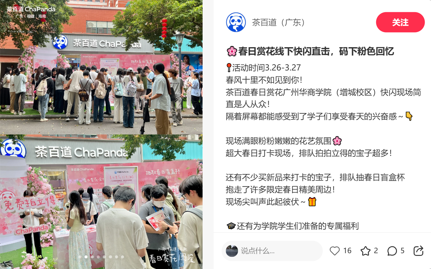 一方面,直接将春天粉嫩的鲜花元素搬到广东、福建、海南5大校园,让户外的春日美景出现在年轻人一代的面前,同时满足了他们拍春天、分享朋友圈的需求。