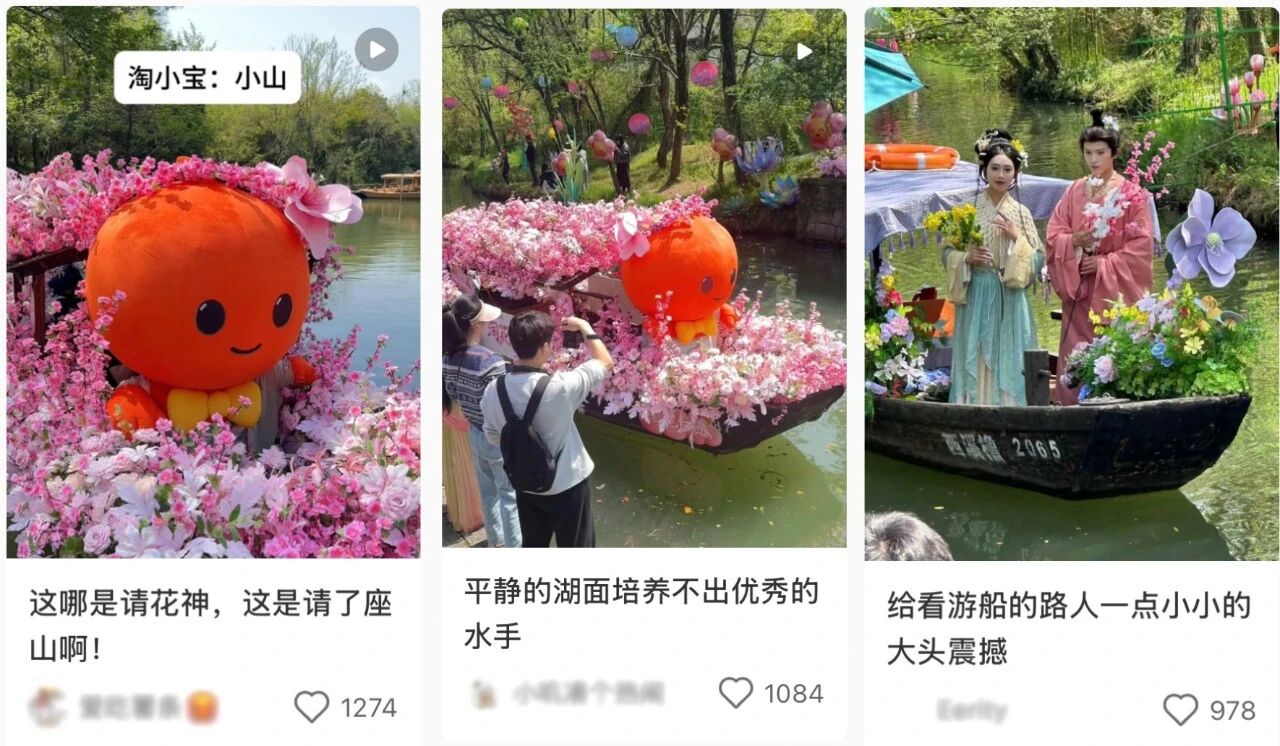 不少周末在西溪湿地的年轻人发现,在「桃花办事处」前排起了长长的队伍,细问之后才发现,他们在领限定版淘小宝周边「桃花宝」,网友戏称:“以前求桃花运靠转发锦鲤,现在靠在西溪湿地领‘桃花宝’。”