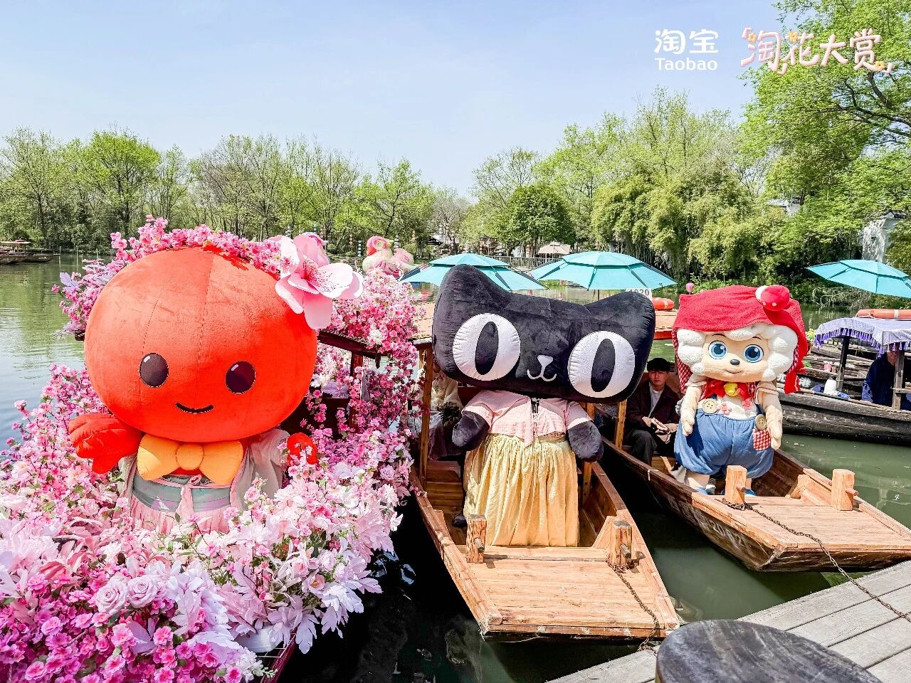 除了淘小宝,这次水上活动还“吸引”了猫天天和喜羊羊,三小只凑成了水上“显眼包”,直接把民俗巡游变成大型真人秀。