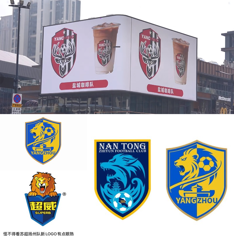 有人看到扬州队的新LOGO很眼熟,有点超威的既视感。还有盐城撞脸瑞幸,让该队伍喜提新的队伍名称等。