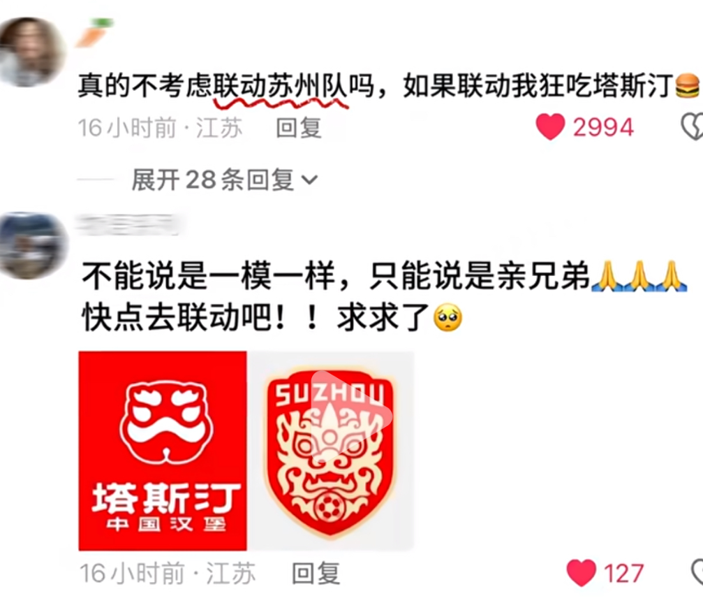 只要是关注过苏州“撞脸”塔斯汀事件的,就会发现,“撞脸”苏超球队LOGO的不只有这一组CP。