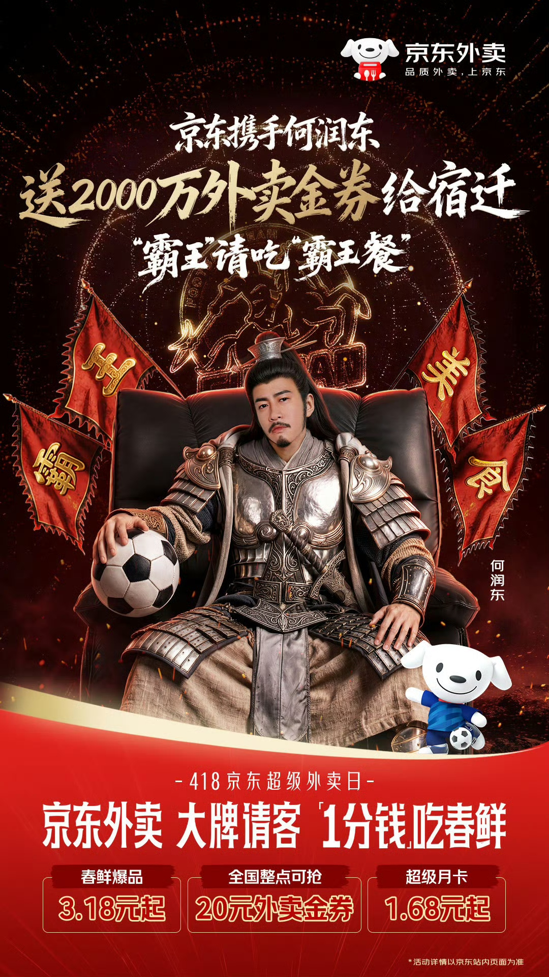 今年“苏超”期间,京东官宣与宿迁队正式达成战略合作,同时还携手何润东,为广大用户送上“霸王餐”的福利。消息一出,宿迁旅游搜索量直接暴涨300%,网友们更是调侃南京队门将,小心霸王举鼎把球门扛走。