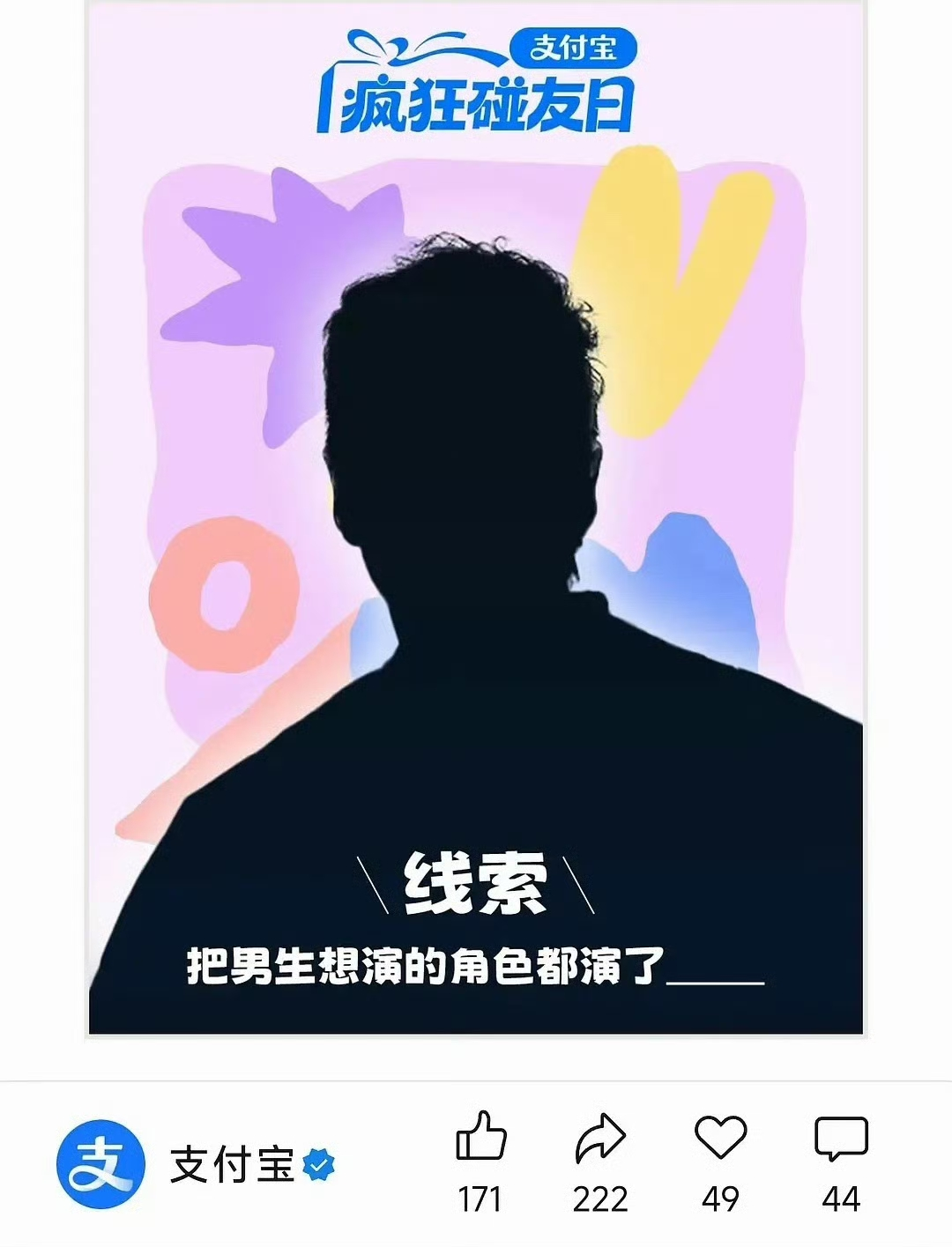 在支付宝的“疯狂碰友日”中,一句“把男生想演的角色都演了”的线索,就让网友猜出来剪影是何润东。毕竟,从吕布、项羽、步惊云到西门吹雪、铠甲勇士,说何润东是九亿少男的梦一点都不夸张。