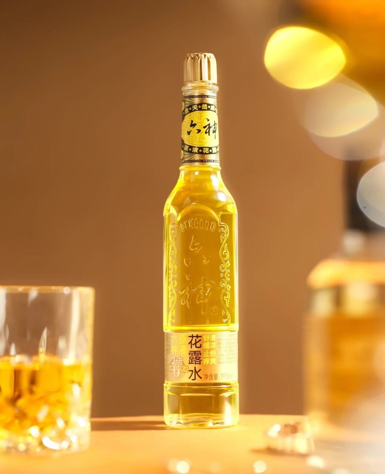 在瓶身设计上,采用了奢侈品喜欢的风格——极简风。“六神”的中英文LOGO,采用浮雕式的琥珀金瓶身,金属质感的瓶盖,以及用浅于瓶盖金属质感的标签纸配上文字,让整个产品透露出满满的高级感。