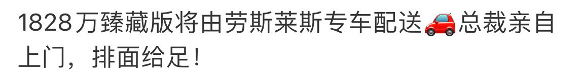 除了很“壕”的产品,其配送方式也很“壕”。为了让消费者自上而下地体验到够贵够高级,王老吉对1828万臻藏版的消费者也很重视,选择“由劳斯莱斯专车配送”与“总裁亲自上门”,排面感拉满,也给此次传播增加了话题性。